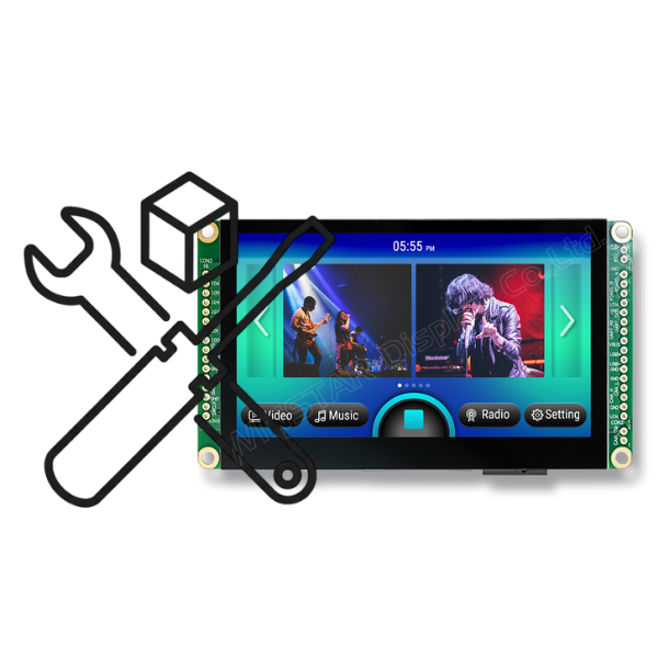 The Smart Display comes with standard UI objects to get customers project off the ground quickly. If customers need custom UI objects support, our engineers are here to help. Send over your contents in PNG/JPG format, we will send over a new set of UI objects within 3~5 working days.
