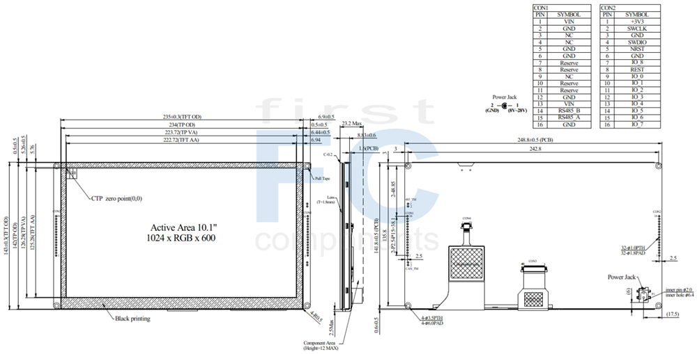 WL0F00101000JGDAESA02-FC is a 10.1-inch Smart Display_RS485 series TFT module, designed as a slave device that communicates with a master device through RS485 commands to display content and return touch event data via Modbus protocol. It features WINSTAR’s TFT standard IPS wide-temperature display, WF101-1024600JL#0P8-FC, and a 4-layer FR4 PCBA with built-in firmware. This 10.1" RS485 series TFT provides an efficient solution for accelerating product development, leveraging the WINSTAR GUI Builder to minimize coding time and reduce overall development costs.