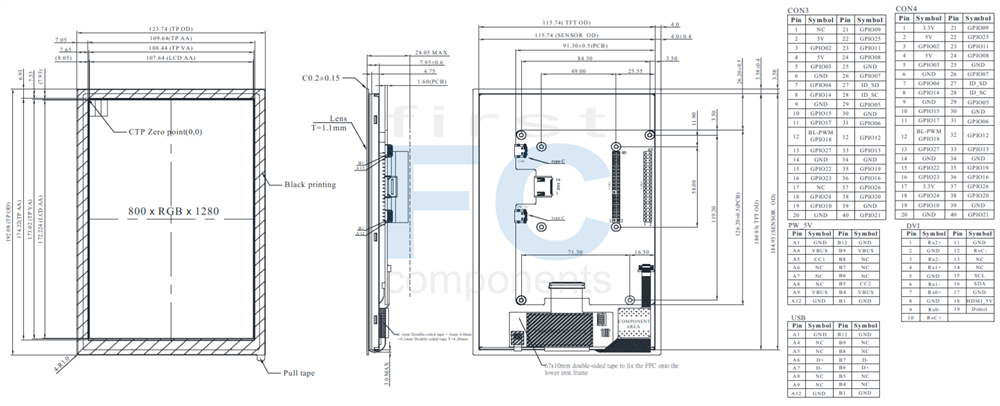 The module supports an HDMI connector with DVI signal input, driven by the LT6911C HDMI-to-display controller IC, enabling direct connection to common HDMI host systems without additional display conversion circuitry. An integrated control board simplifies system design and reduces development effort, while the PCAP ensures smooth and precise multi-touch performance under industrial conditions. The touch input is provided via a standard USB interface for easy integration with host systems.