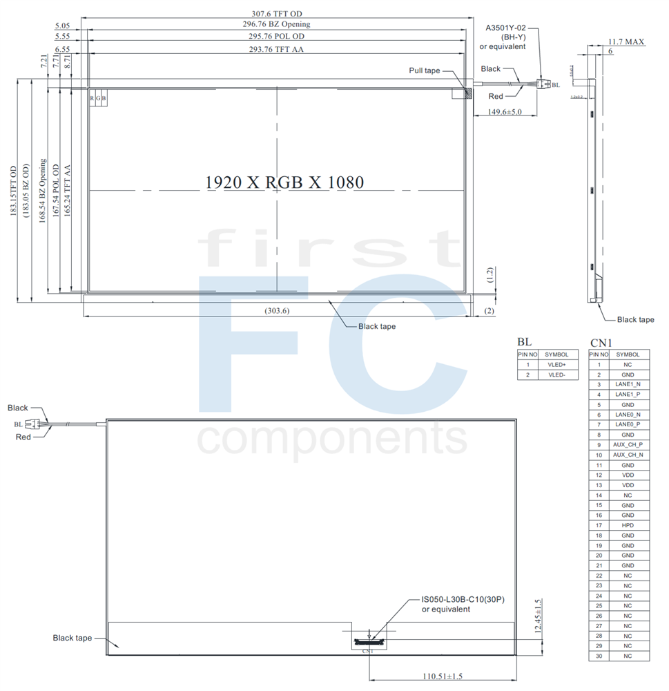 The WFN1330EA2#0P0-FC 13.3-inch Full HD TFT LCD module features a LED backlight with a typical luminance of 500–550 cd/m². It has a normally black, transmissive TFT panel with a 1920×1080 resolution and wide 85° viewing angles in all directions.