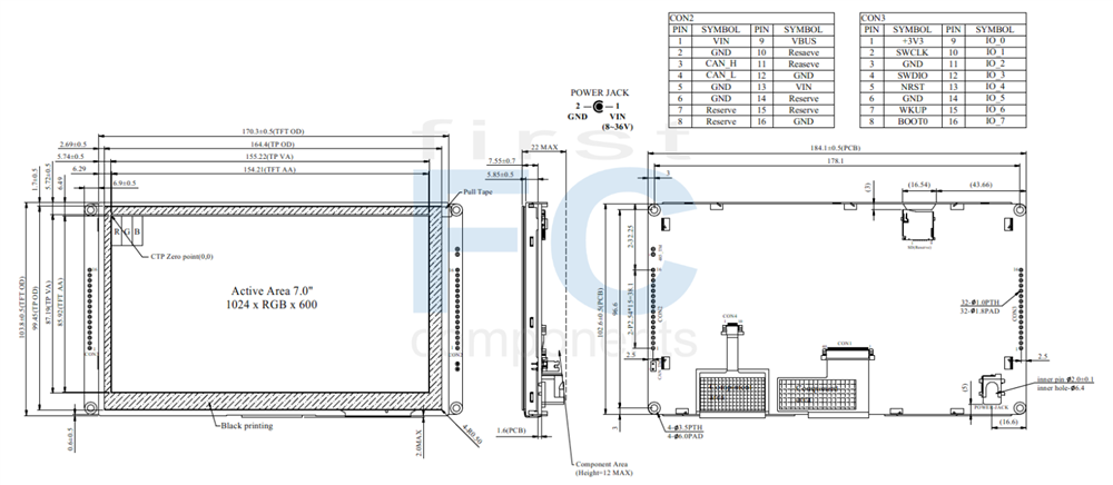 PCB 184.1(W) x 102.6(H) x 1.6(D) mm