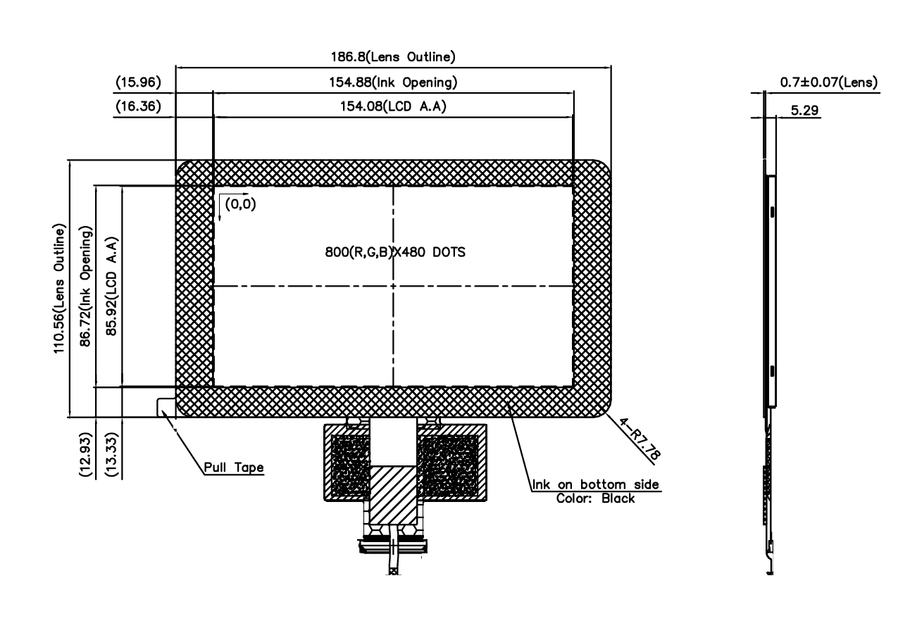 3) 7" Industrial grade TFT-LCD High Brightness panel