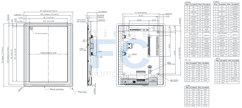 The WF70-12001920C6H#VSP3-FC is a 7-inch full-color TFT LCD display featuring IPS technology for exceptional color accuracy and wide viewing angles. With a 1200x1920 resolution and the ability to display 16.7 million colors, this display offers vibrant, high-quality visuals ideal for industrial control, smart home systems, and medical devices. It supports HDMI connectors (via DVI signal) and integrates a projected capacitive touch panel (PCAP), providing responsive touch functionality for enhanced user interaction.