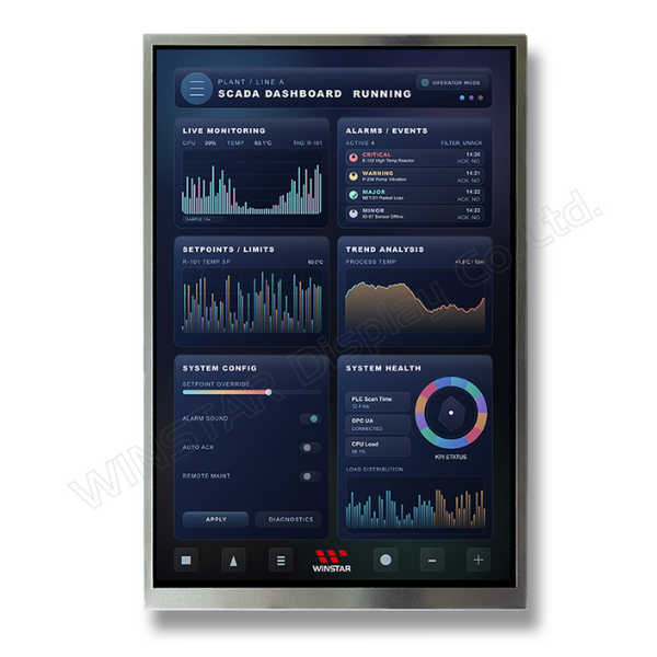 Designed for long-term operation, the display supports an operating temperature range of –20°C to +70°C, making it suitable for industrial HMI, electrical control systems, medical display interfaces, equipment monitoring panels, and information terminals.