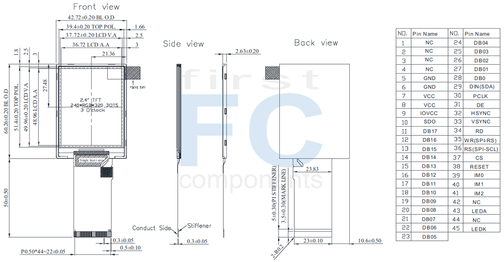 The WINSTAR WFN0240DA2#0X0-FC is a 2.4-inch transflective TFT-LCD module designed to deliver excellent visibility in both indoor and outdoor environments. With a resolution of 240×320 dots and ST7789 driver IC, this display ensures stable performance and easy integration into various systems. It supports multiple interfaces including MCU, SPI, and RGB, offering design flexibility for engineers. Featuring anti-glare surface treatment and an operating temperature range of -20℃ to +70℃, this module is an ideal choice for handheld devices, industrial controllers, and medical equipment where reliable readability and durability are required.