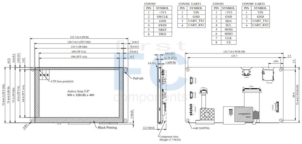 TFT 5" 800x480, Multi-Interface Development System, MCU STM32U599, 400cd/m², Wide View Angle (IPS), Capacitive touch panel (GG)