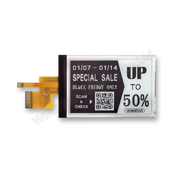 The WAA0270BA7#A2N1AA-FC is a 2.7-inch E-paper Display (EPD) equipped with an integrated front light panel, delivering a high-contrast black-and-white reflective display with exceptional readability and ultra-low power consumption. Featuring a resolution of 264x176 pixels, this module is an optimal solution for battery-powered devices that require reliable performance and clear visibility across various lighting conditions, including low-light environments.