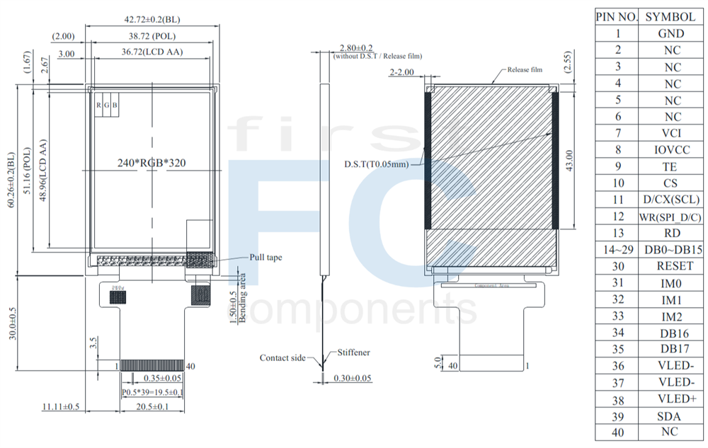 The WF24-240320LD#0SP0-FC is a 2.4-inch portrait IPS TFT display module with a resolution of 240x320 pixels and high brightness of 1000 nits, ensuring excellent readability in strong ambient light. With 80° wide viewing angles in all directions and a contrast ratio of 800:1, it delivers vibrant and consistent image quality for compact vertical applications.